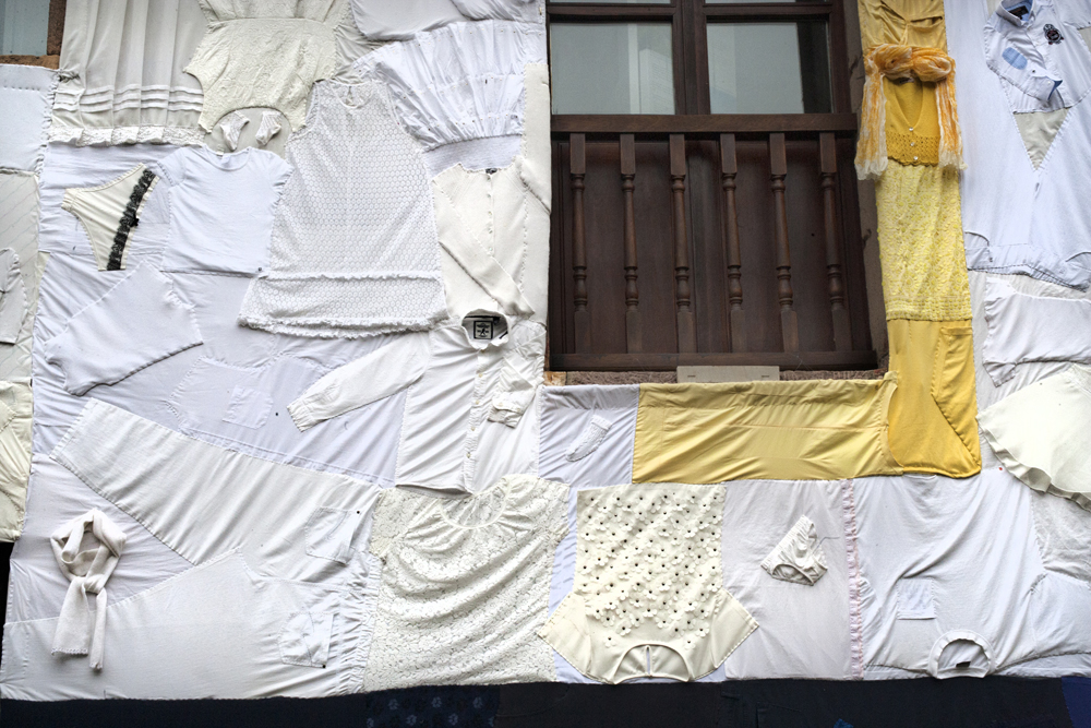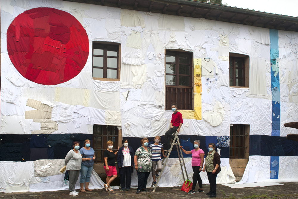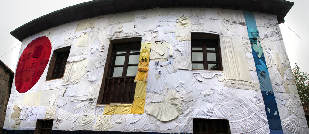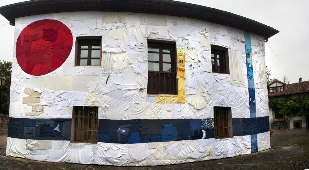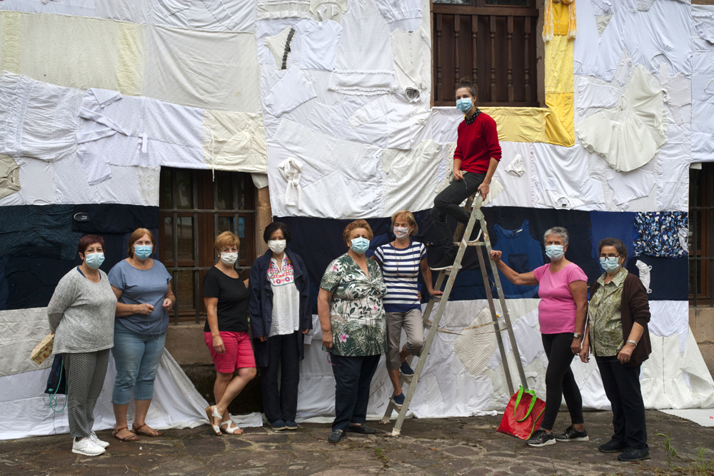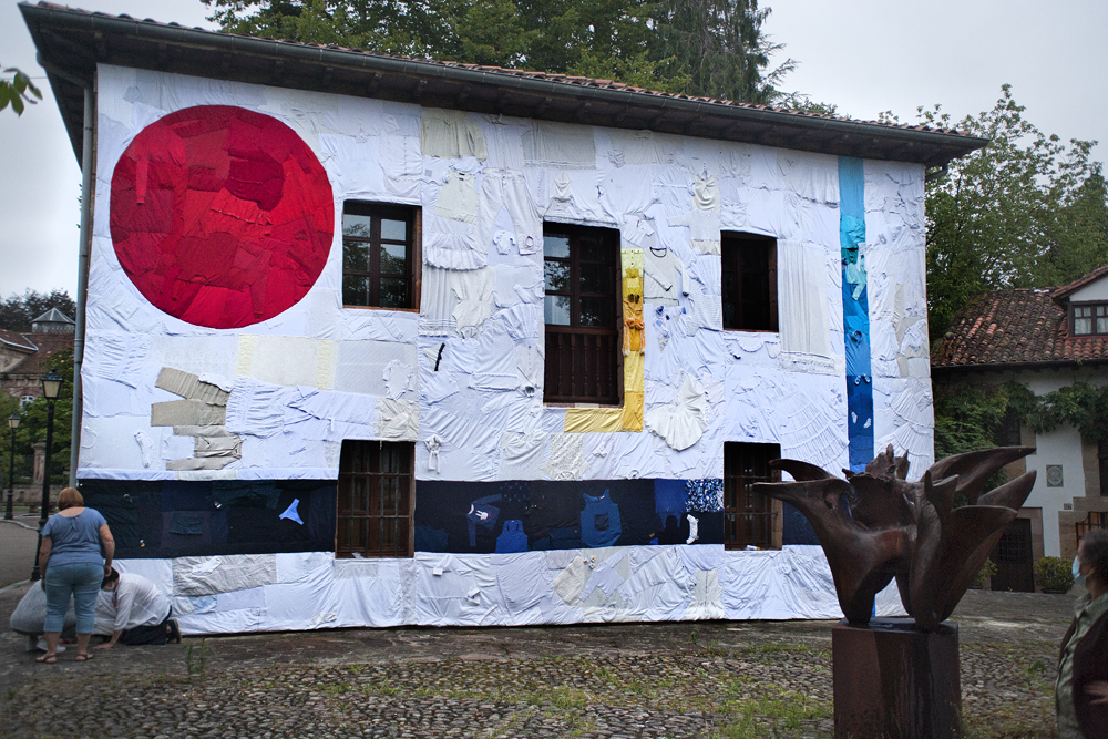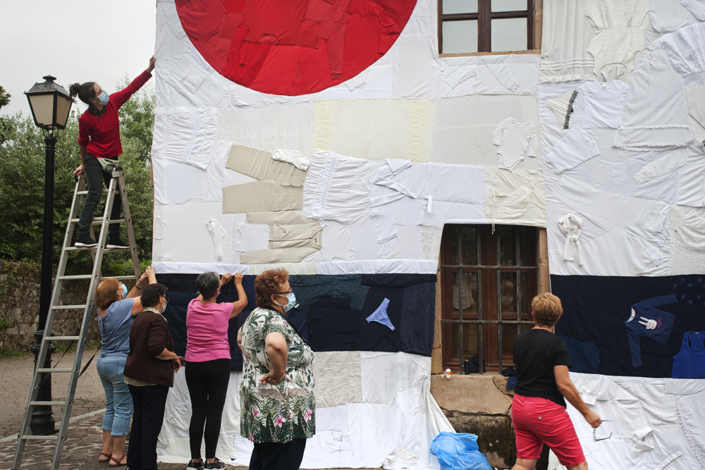 Este año las mujeres de la Asociación de Mazcuerras, nos ofrecen su obra «TEJIDOS DEL HOGAR».  Bajo la dirección artística de Paula Andrés, han cubierto la fachada sur de la Biblioteca de Mazcuerras con un tapis elaborado con ropa usada obtenida gracias a la aportación del “Mercadillo de Villanueva de la Peña”, ONG “RUTA6” y “FIBRA SENSIBLE” de Cabezón de la Sal. Estimulando su lado más creativo y sostenible, potenciando el orgullo personal y colectivo con la culminación de una pieza de arte de gran magnitud, gracias al trabajo en equipo
