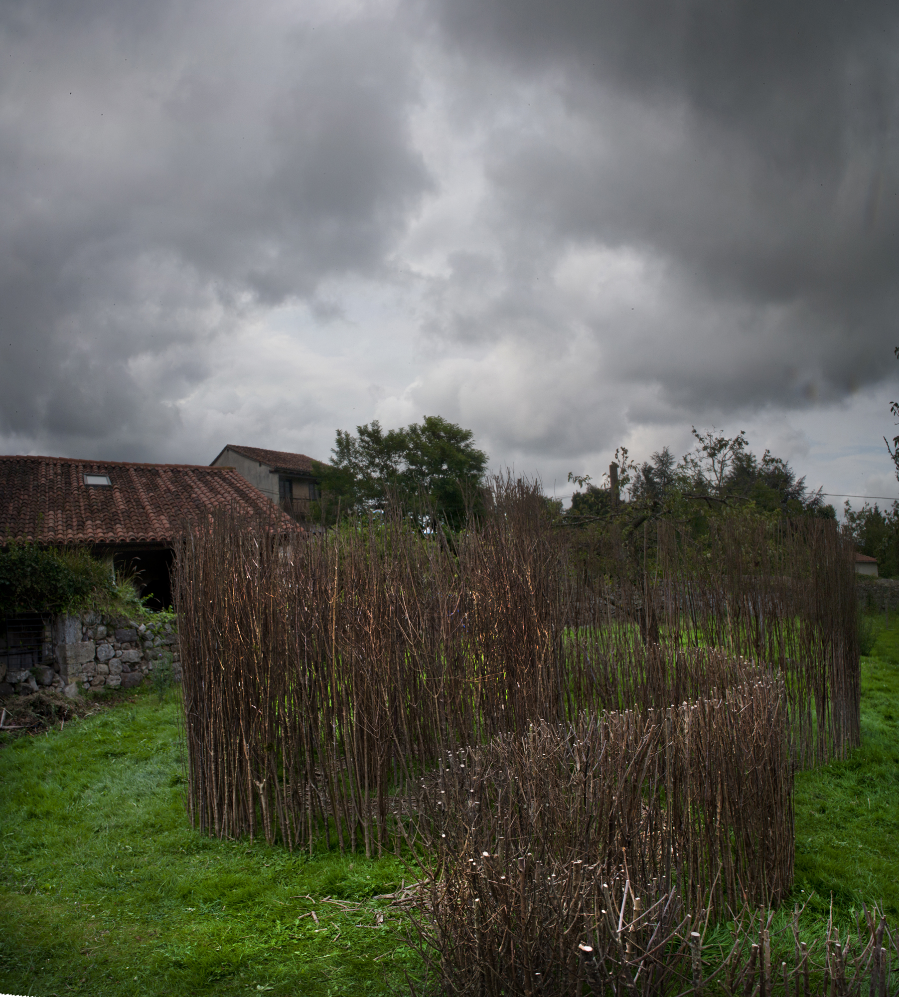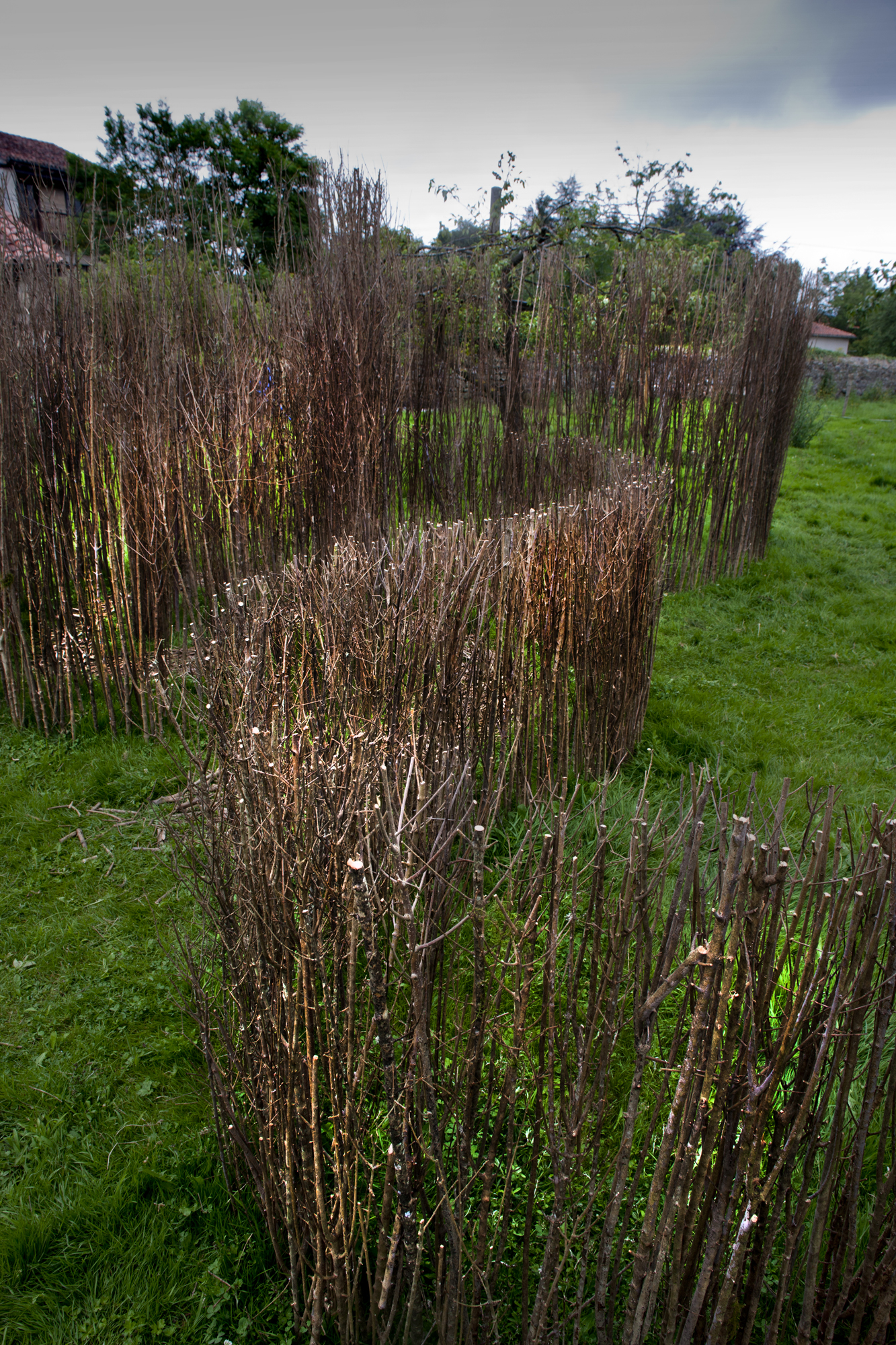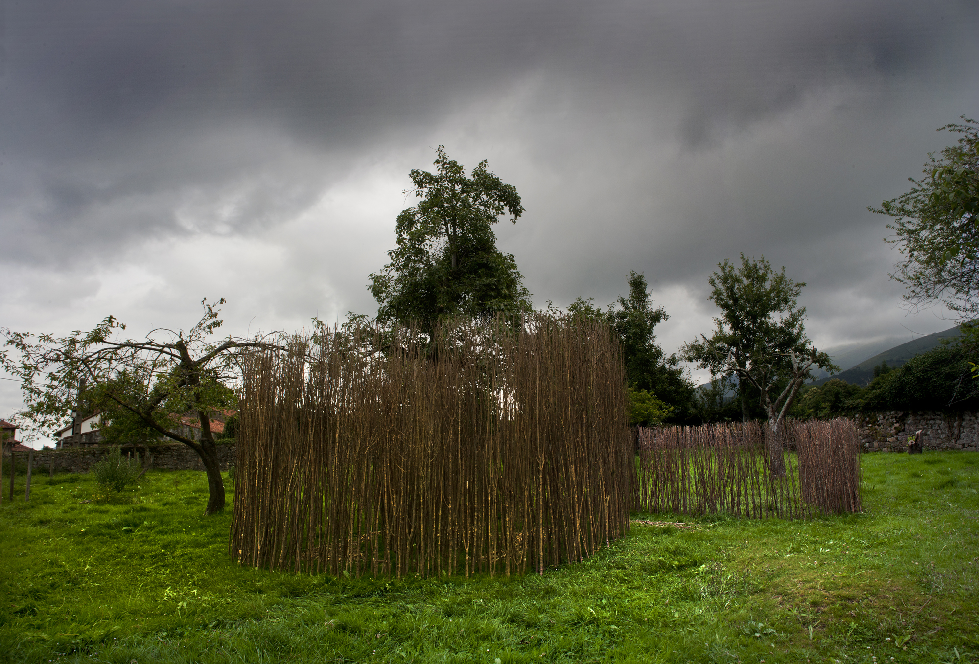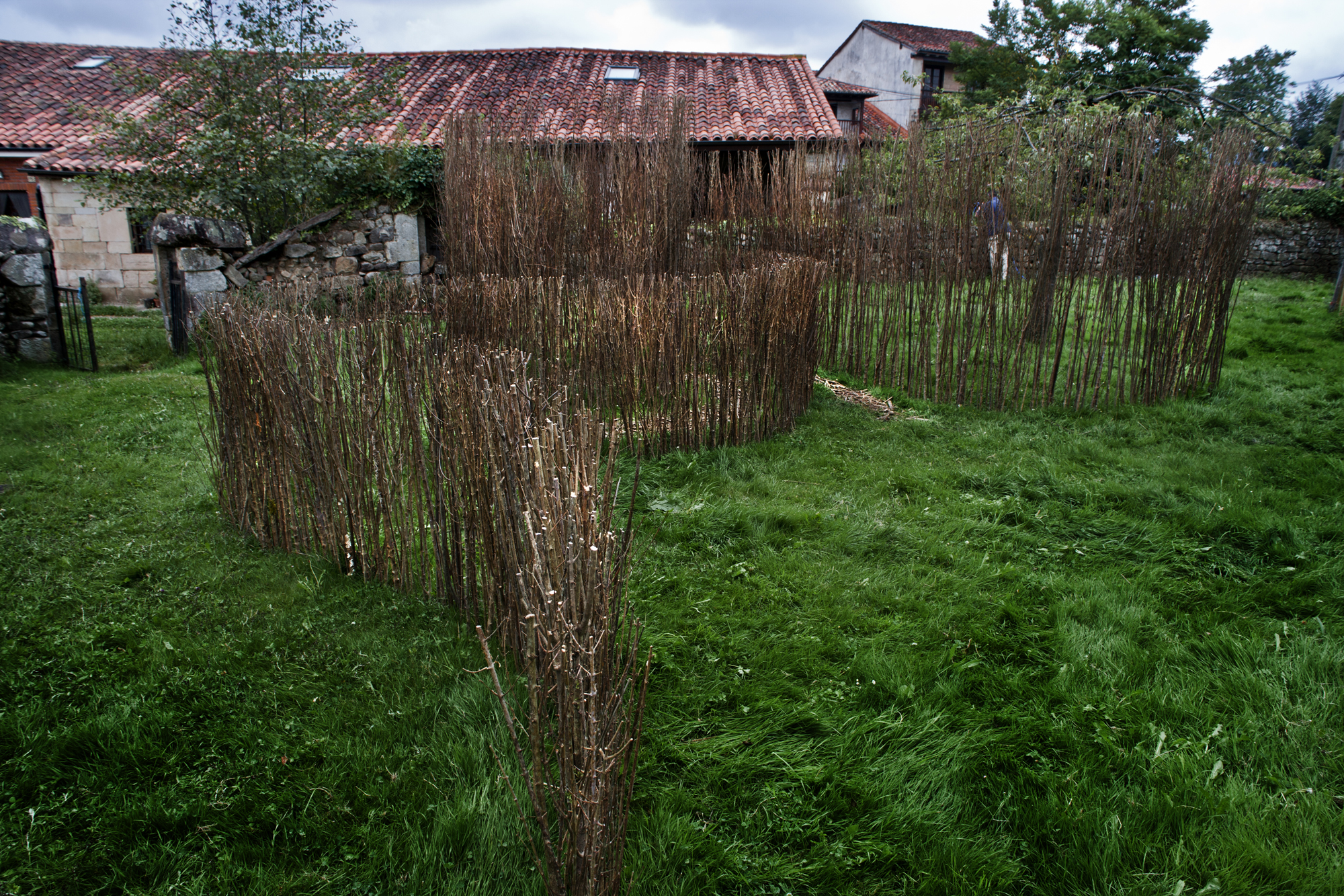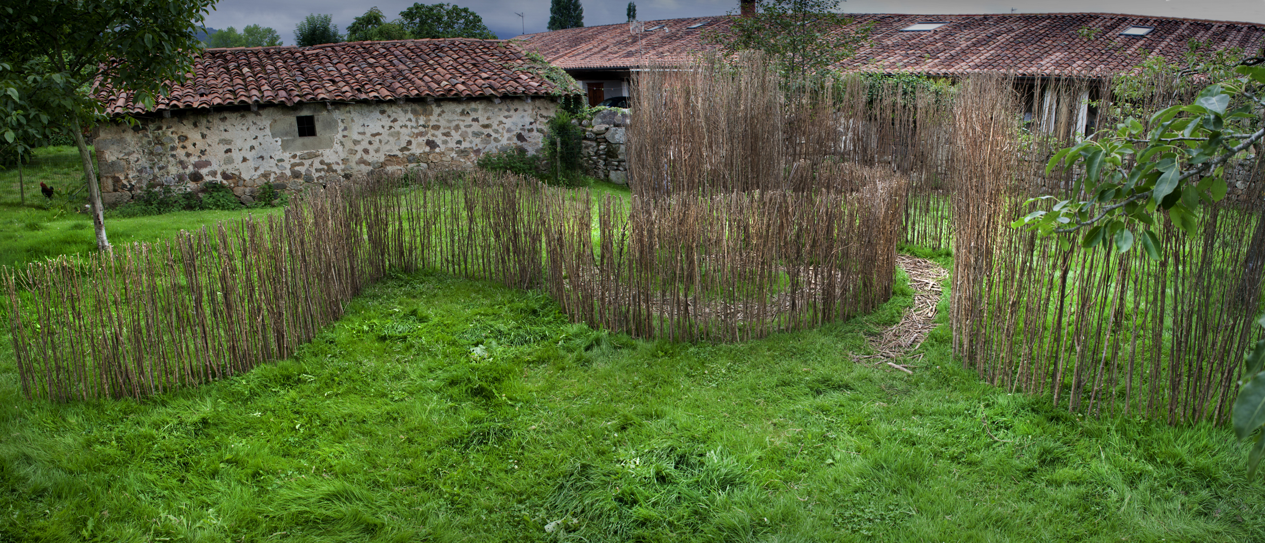 Artistas del landart italianos, aunque Carlo, en concreto, afincado en Cantabria, nos ofrecen su obra «Laberinto», en una de las huertas de Mazcuerras.