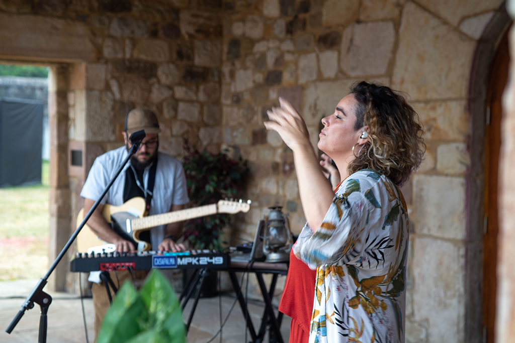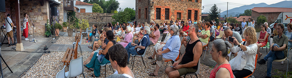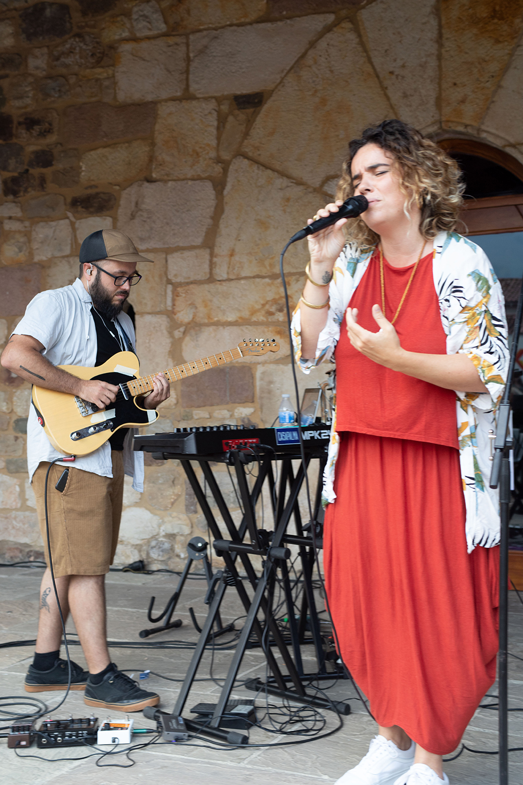 El sábado 16 de julio, disfrutamos de una primicia, el estreno de la formación del duo CASAPALMA, constituido por Irene Atienza y Joel Molina.  Irene recien llegada de su etapa latinoamericana, tras más de una década  imbuida del floklore brasileño.  Se instala en Valle,  en su casa familiar, que la acogió de niña, en Casa Palma. Una pandemia y el aislamiento general la llevaron a llenar horas en el mundo virtual. Ahí se cruzó en su camino (tecnológico) Yoel Molina, músico de jazz madrileño al que esa misma pandemia llevó a replantearse su lugar en el mundo, al menos el de residencia, y se trasladó a Valderredible. Atienza le contó su proyecto de meterse de lleno en la música tradicional y Molina le contó que estaba deseando empezar en algo parecido. Enseguida conectaron y tras empaparse de la canción montañesa con los auténticos representantes sobre el terreno,  el luthier y gaitero David López, con el rabelista, violinista y también constructor del instrumento, Esteban Bolado, con los miembros del Coro Ronda La Fuentona.quieren lanzar próximamente su primer disco en septiembre.