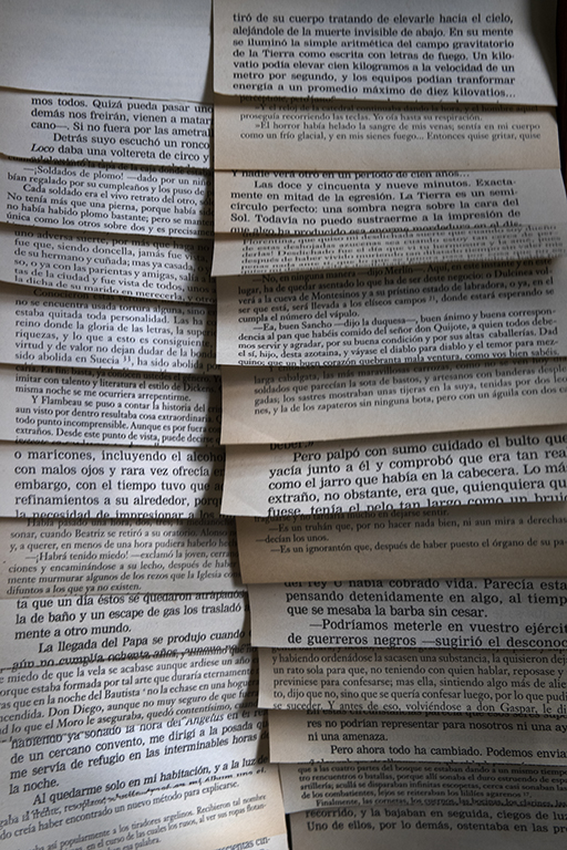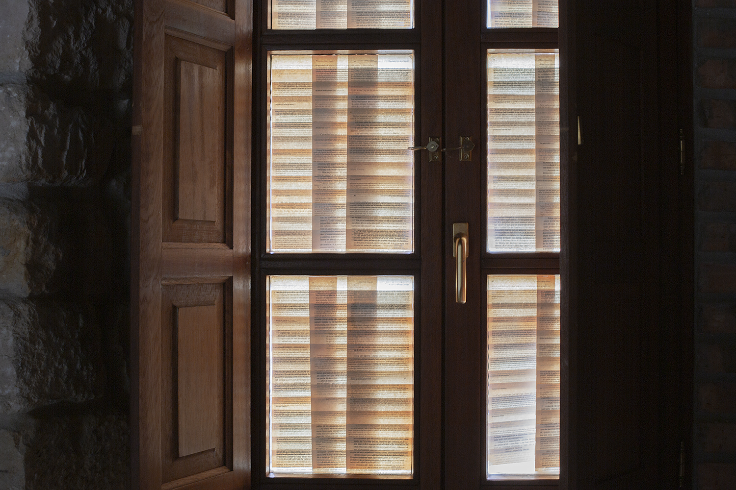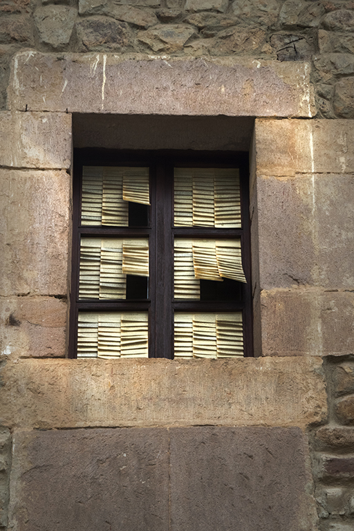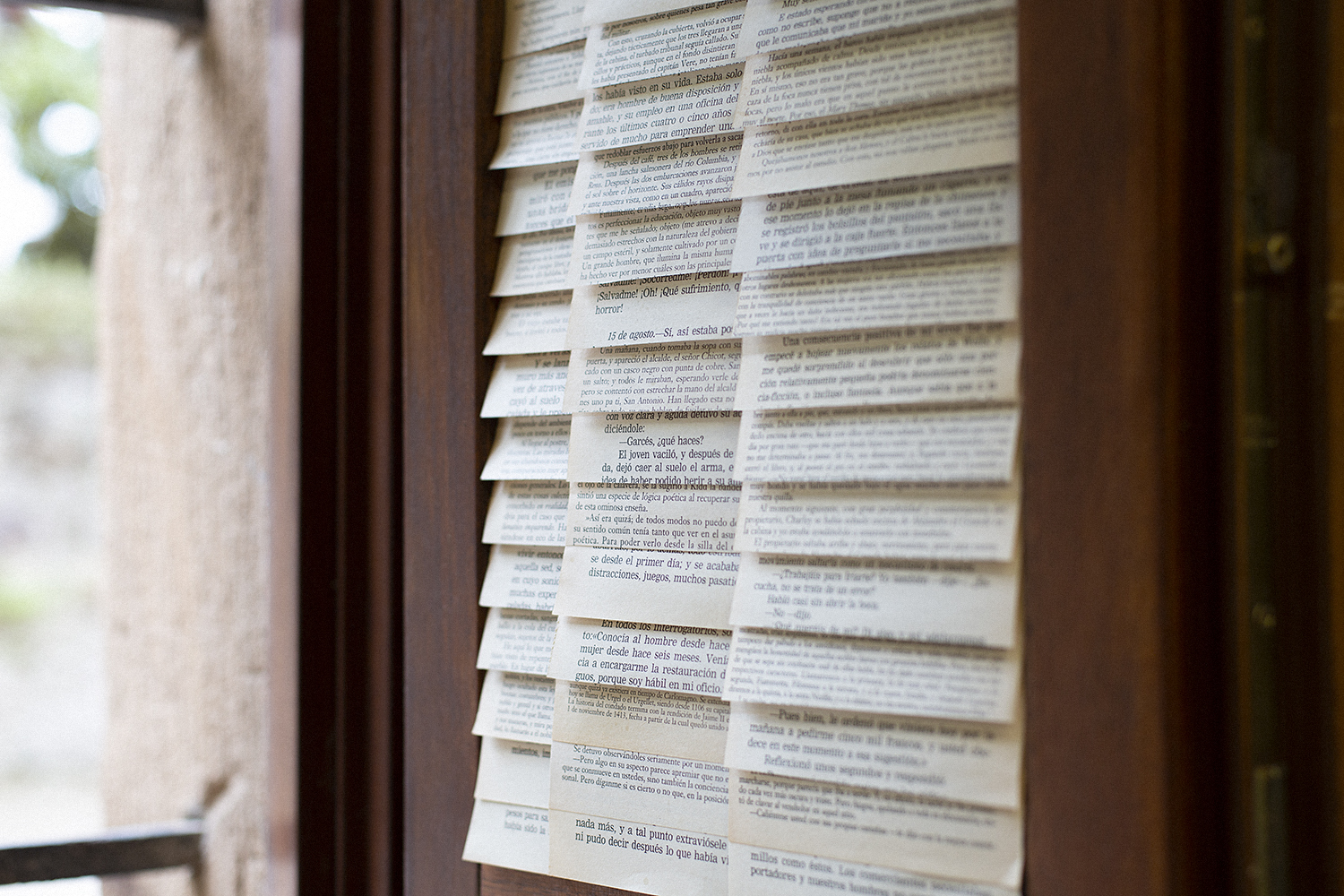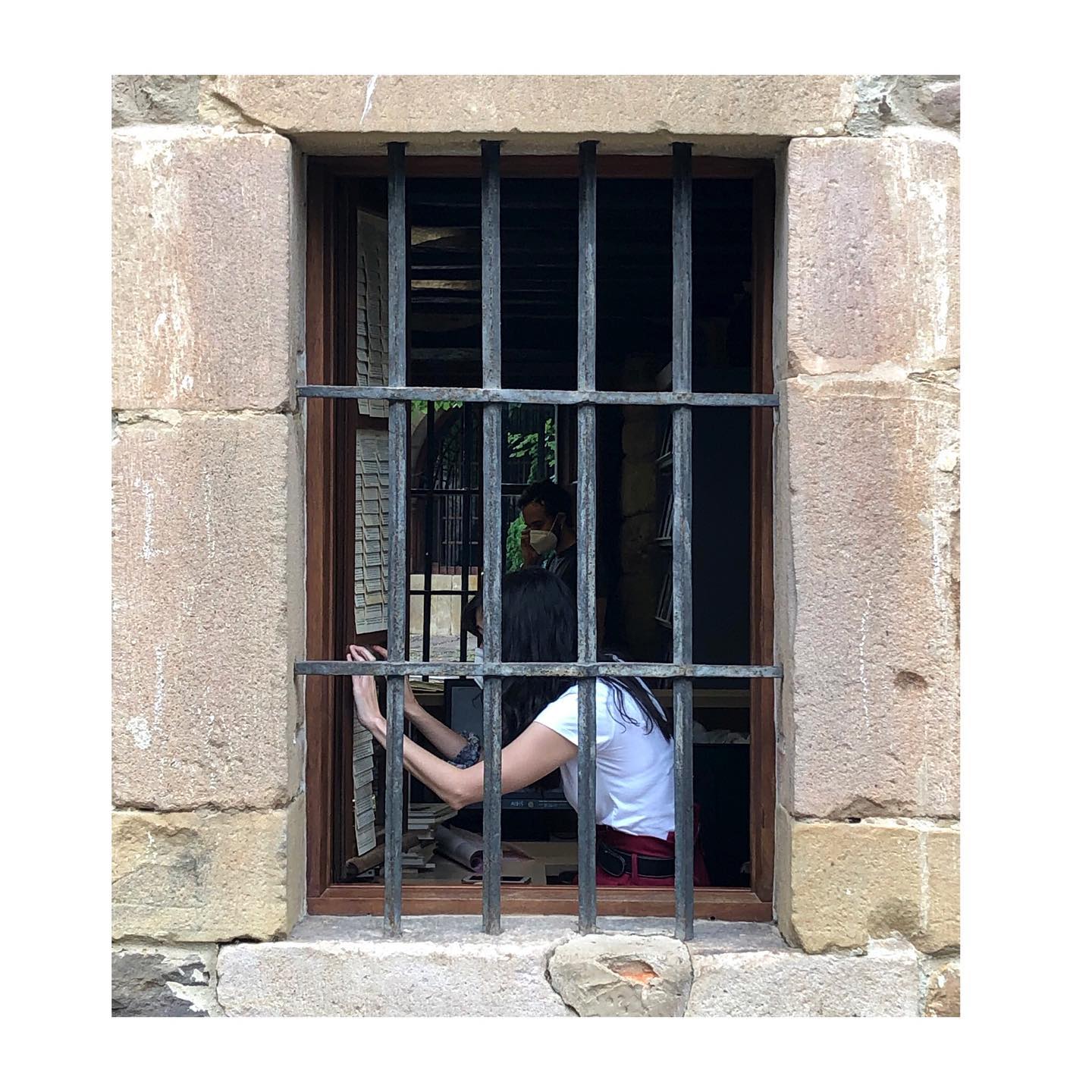 En las letras no leídas cientos de páginas de libros visten las ventanas de la biblioteca de Mazcuerras que, como tantas otras, se vio obligada a cerrar sus puertas como consecuencia de la situación epidemiológica que nos ha tocado vivir. De este modo, las ventanas del edificio se cubren con persianas de páginas, con aquellas lecturas que se podrían haber hecho en ella y que quedaron pendientes para otro momento u otro lugar.