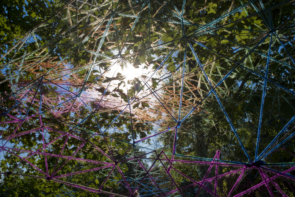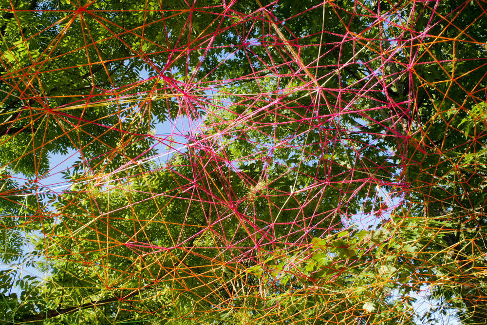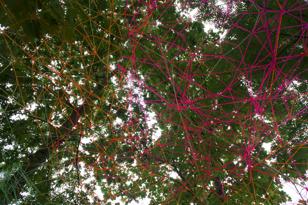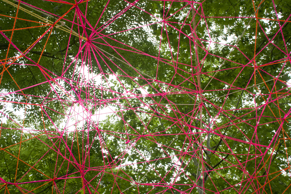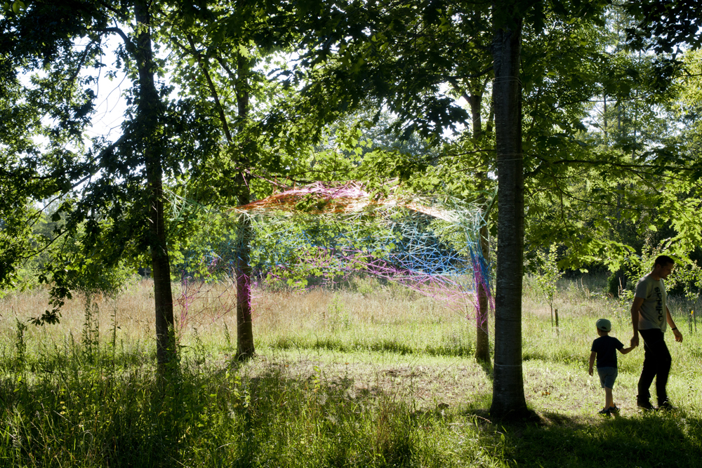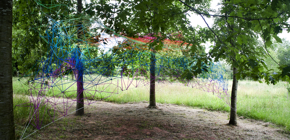 Esta pareja de artistas santanderinos, nos ofrece este año una intervención en el bosque de Mazcuerras, junto al río, que podemos titular «Bóveda de luz»