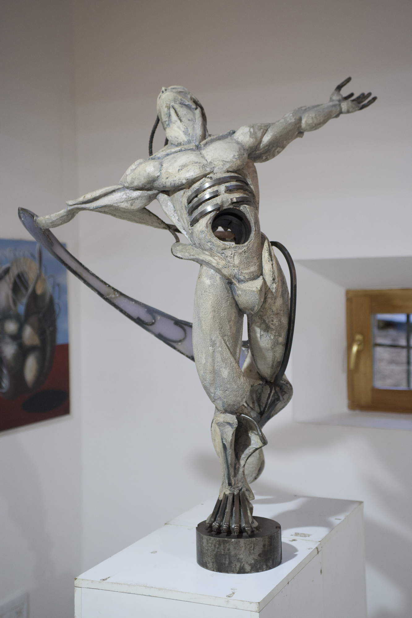 Reconocido escultor torrelaveguense, nos aporta sus obras, algunas de gran formato, tanto al aire libre, como bajo teja, en la sala «la casa gótica»