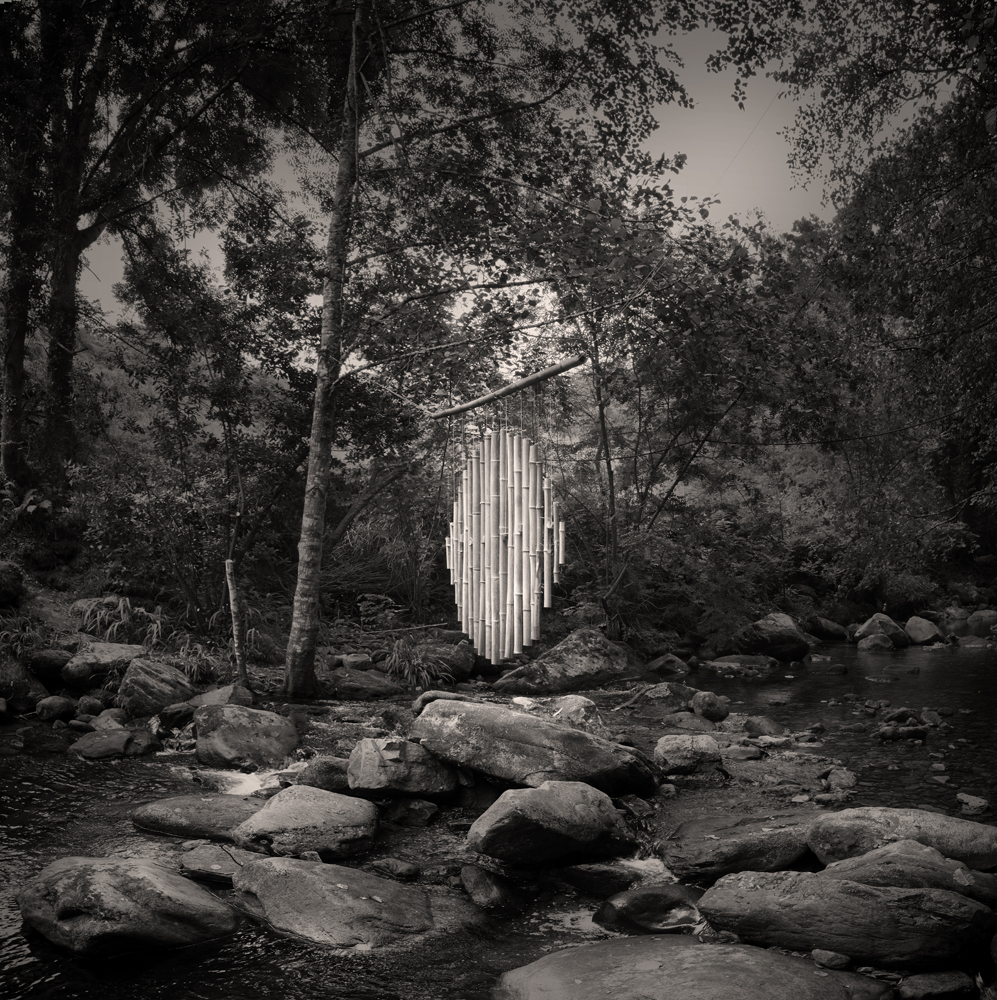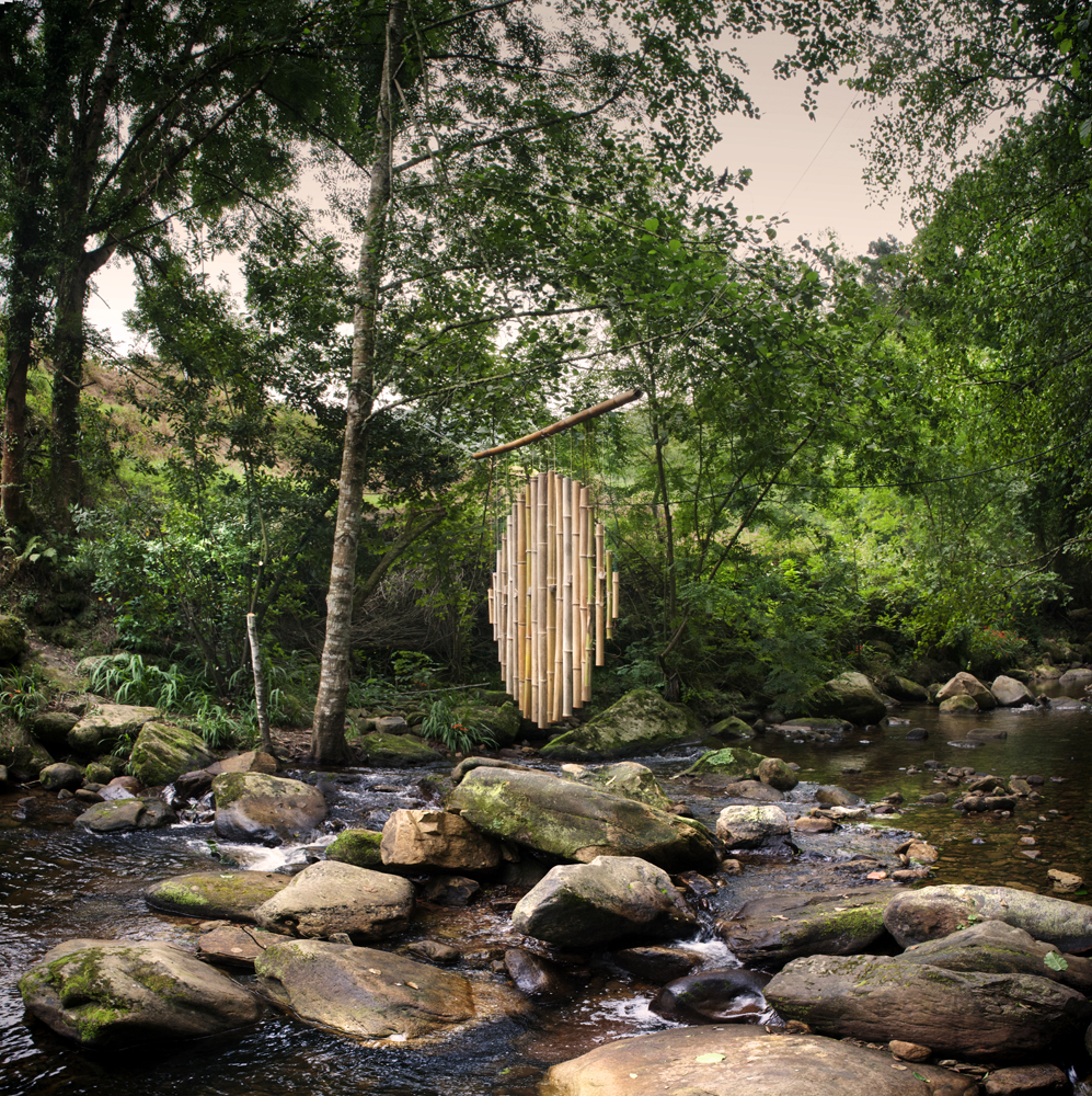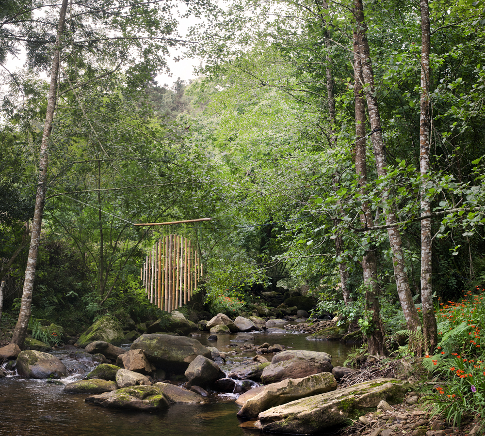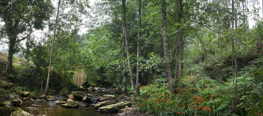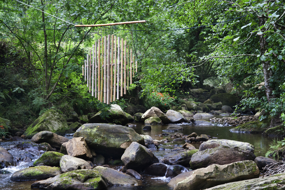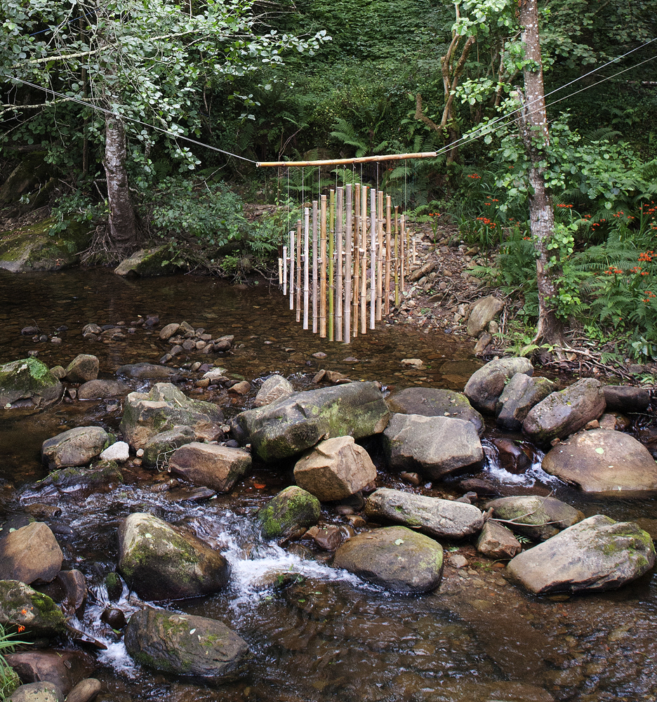 Artistas y diseñador, nos muestra su faceta landart  con «LOS SONIDOS DEL TIEMPO», una instalación sobre un rincón del río Pulero en Herrera de Ibio.