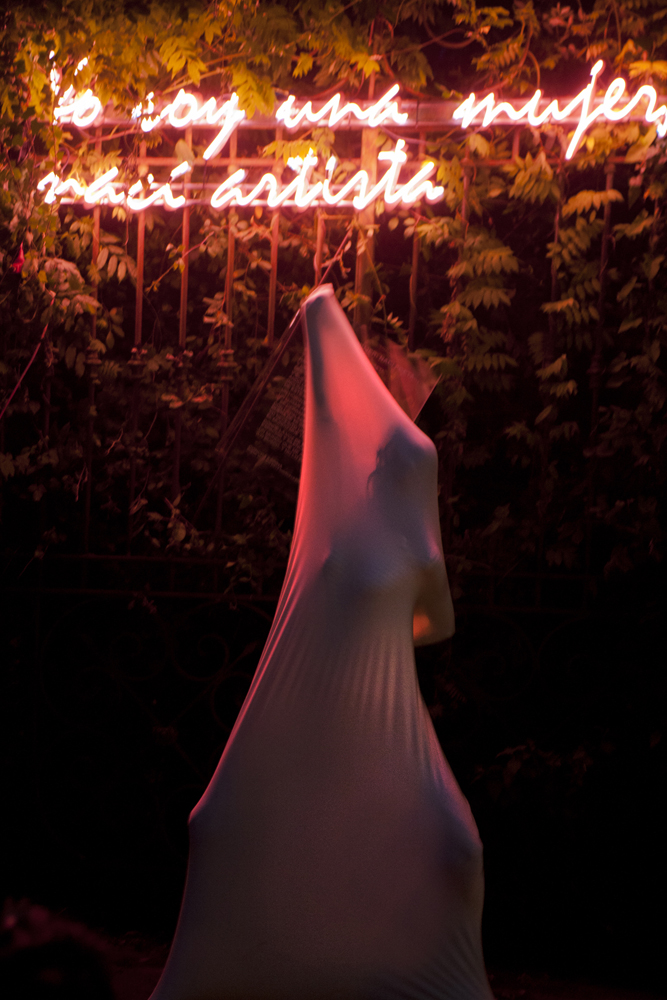 Para su presentación María José Arce desarrolla una performance de gran impacto visual.