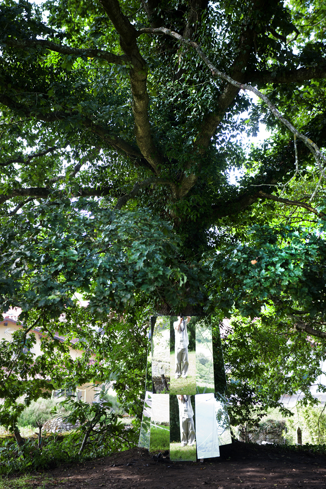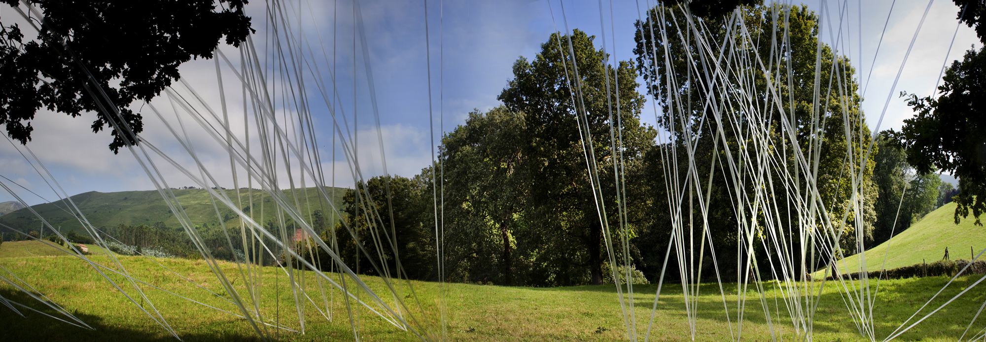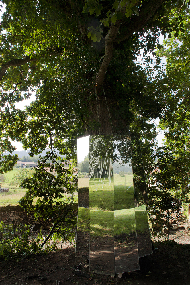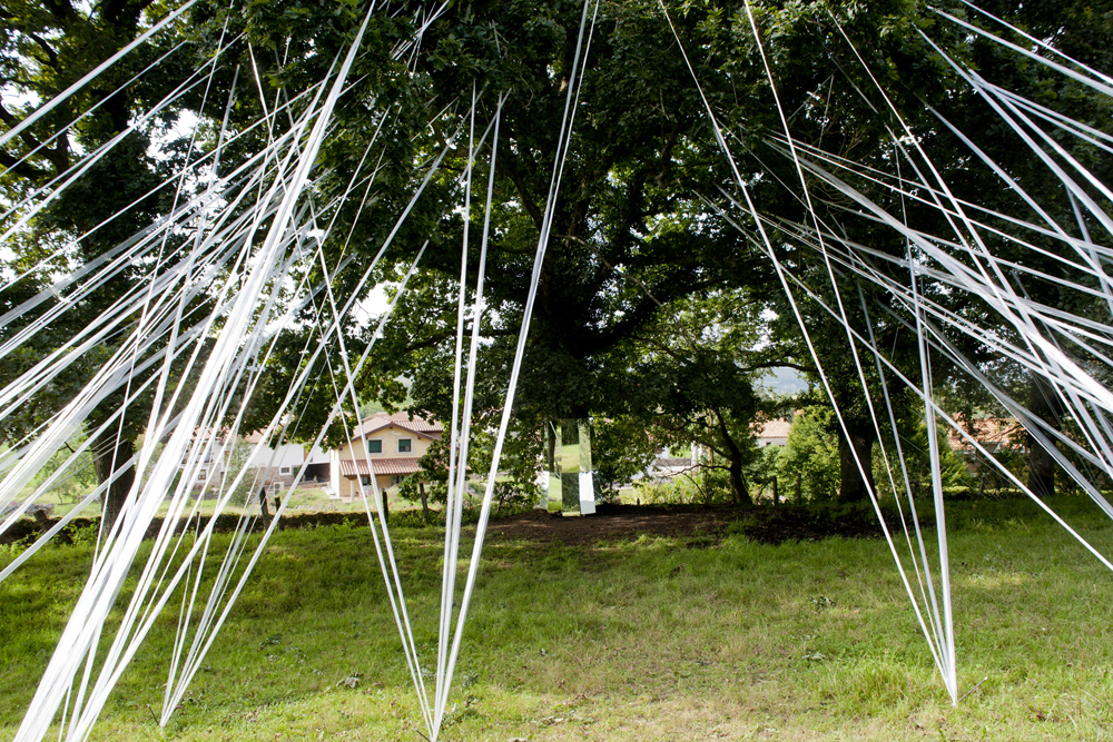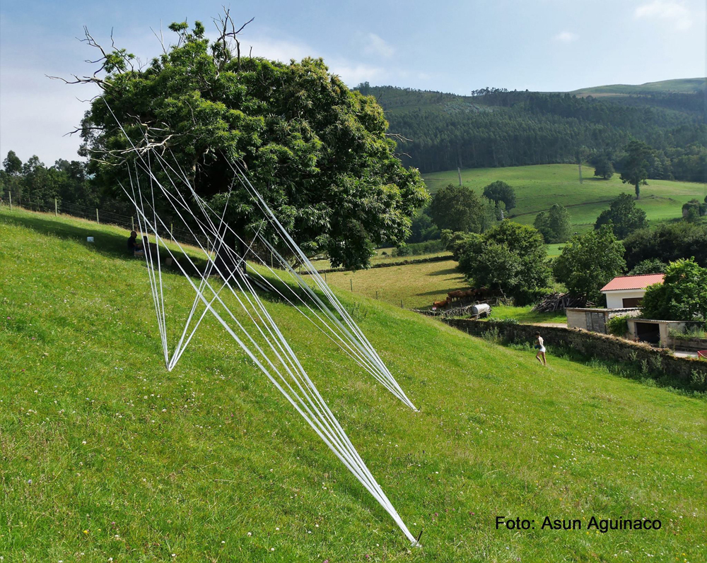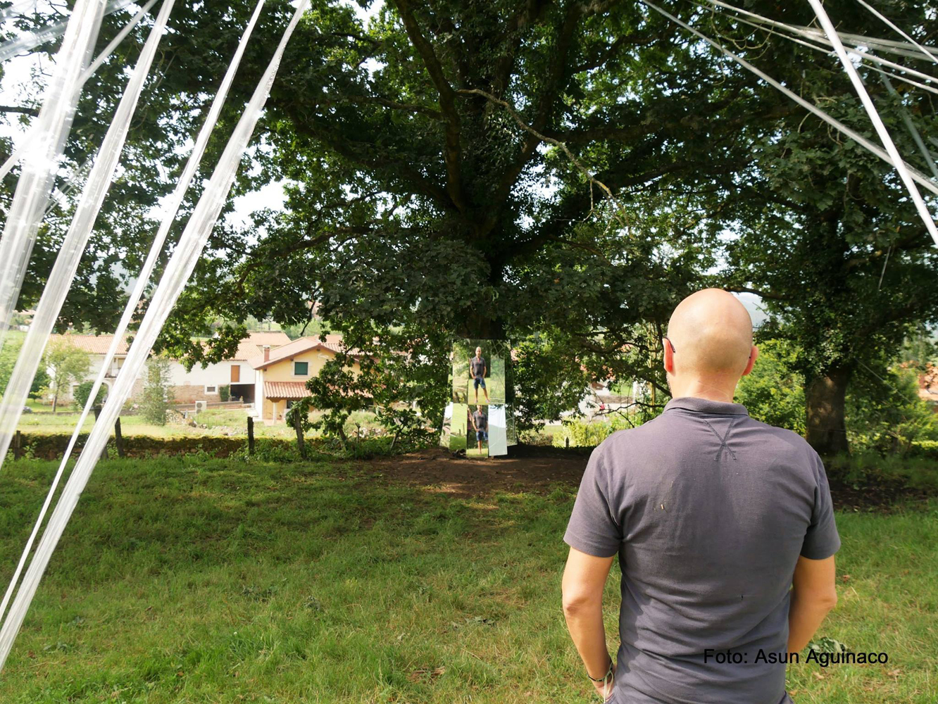Artista cántabro de larga trayectoria, residente en Selaya, interviene utilizando árboles centenarios, que con bandas de plástico recicladas, consigue contactar con la tierra, en una estructura etérea, que los conecta a la tierra, ya que sus troncos desaparecen por el efecto reflectante de espejos, que permiten con el reflejo, interactuar al visitante a modo de tronco vivo. Otra intervención similar, apreciable «desde fuera», utiliza un castaño centenario como testigo.