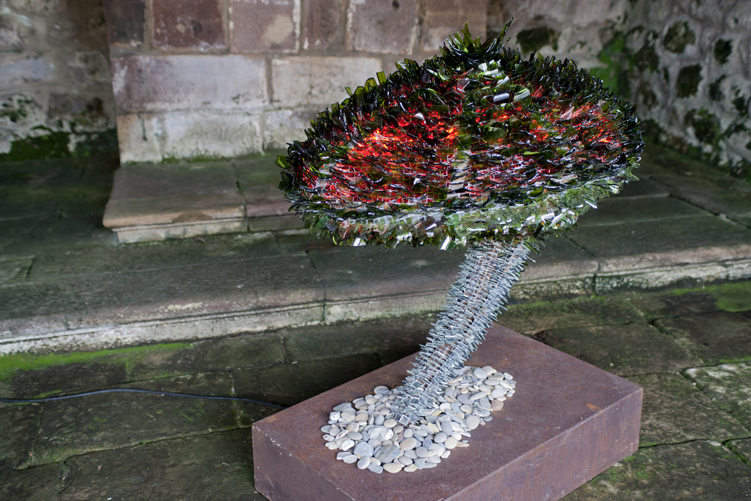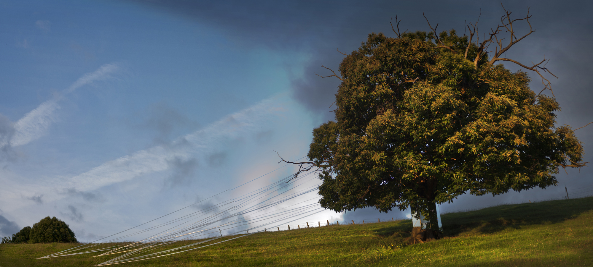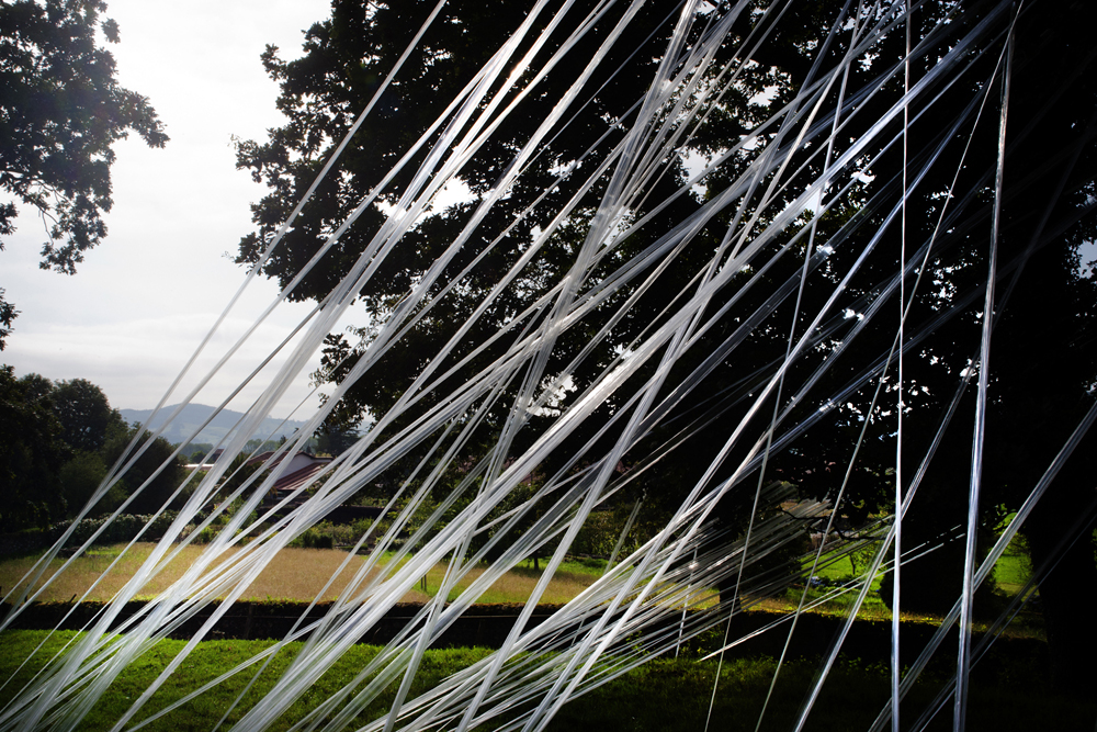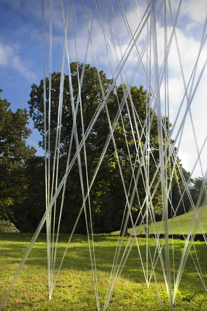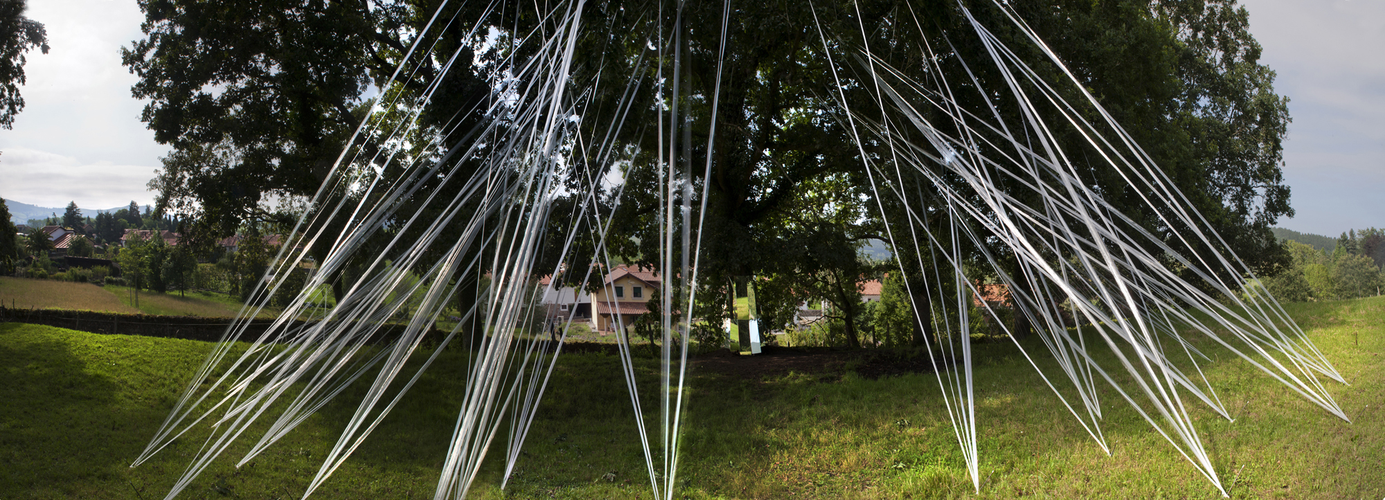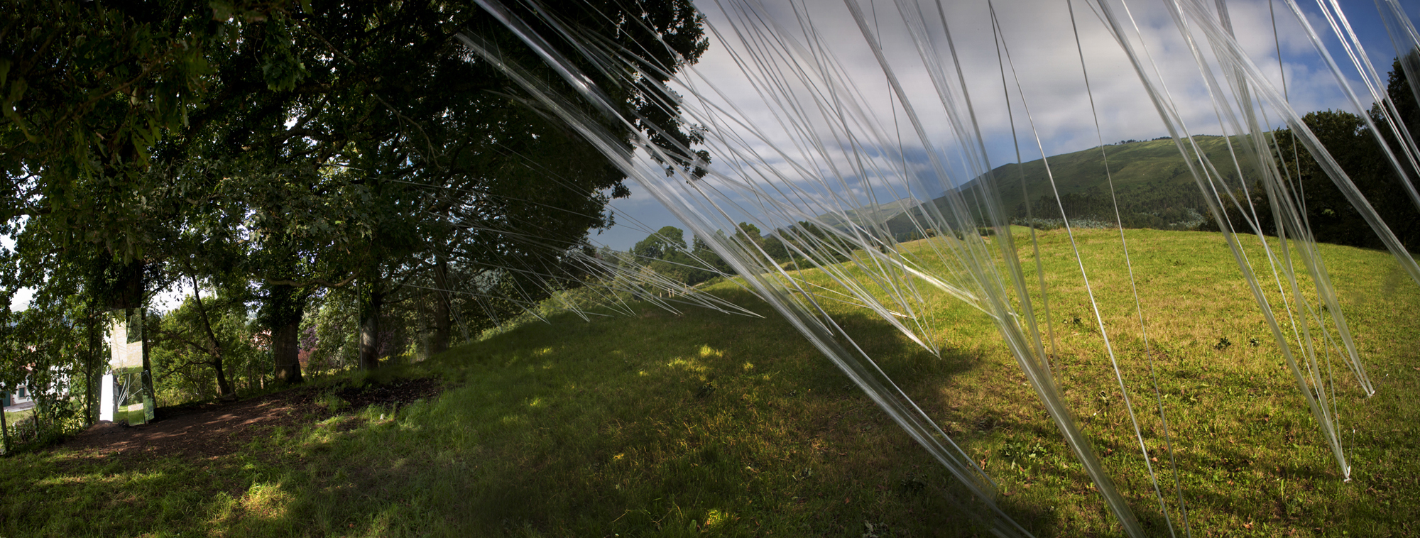 Artista cántabro de larga trayectoria, residente en Selaya, interviene utilizando árboles centenarios, que con bandas de plástico recicladas, consigue contactar con la tierra, en una estructura etérea, que los conecta a la tierra, ya que sus troncos desaparecen por el efecto reflectante de espejos, que permiten con el reflejo, interactuar al visitante a modo de tronco vivo. Otra intervención similar, apreciable «desde fuera», utiliza un castaño centenario como testigo.