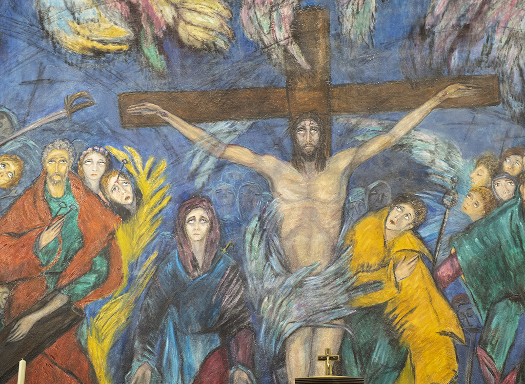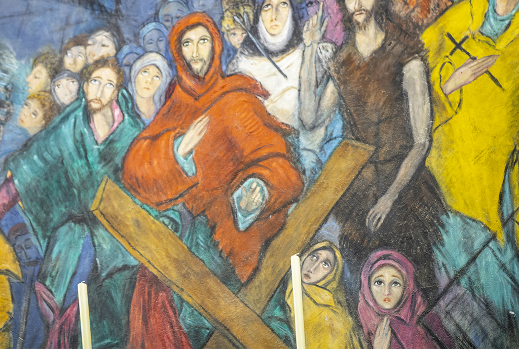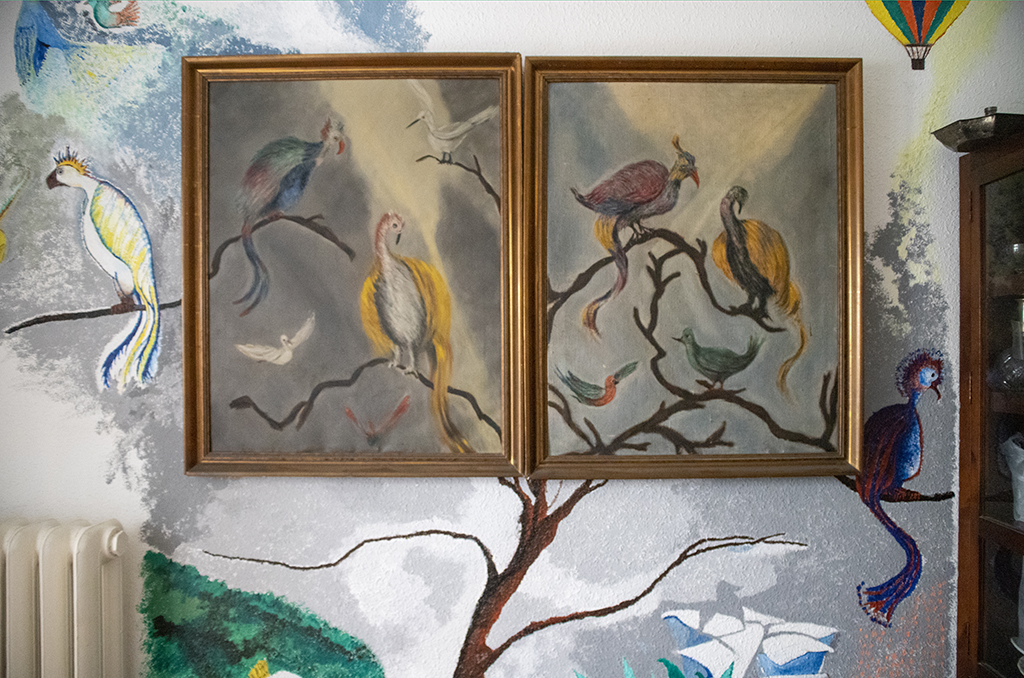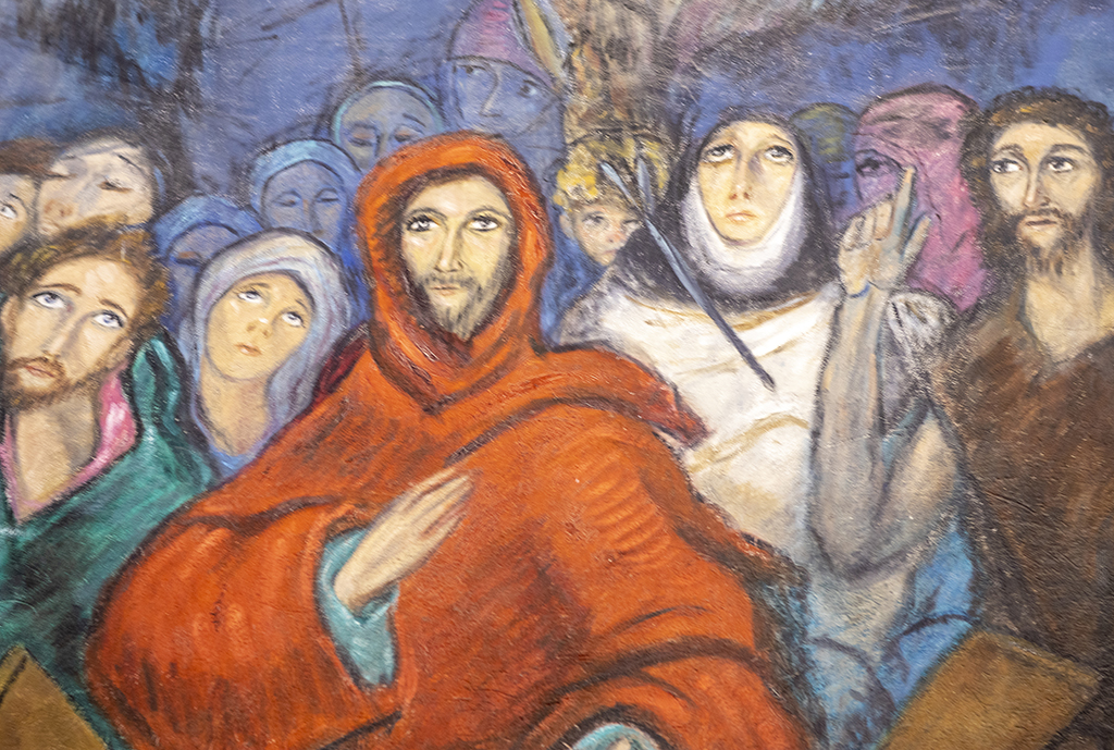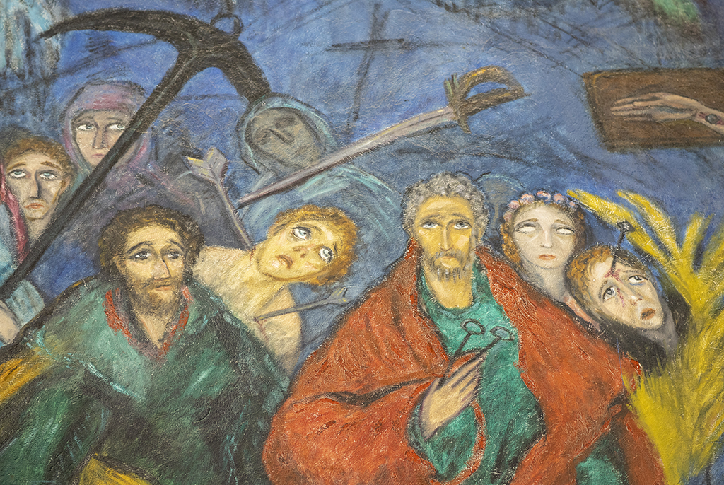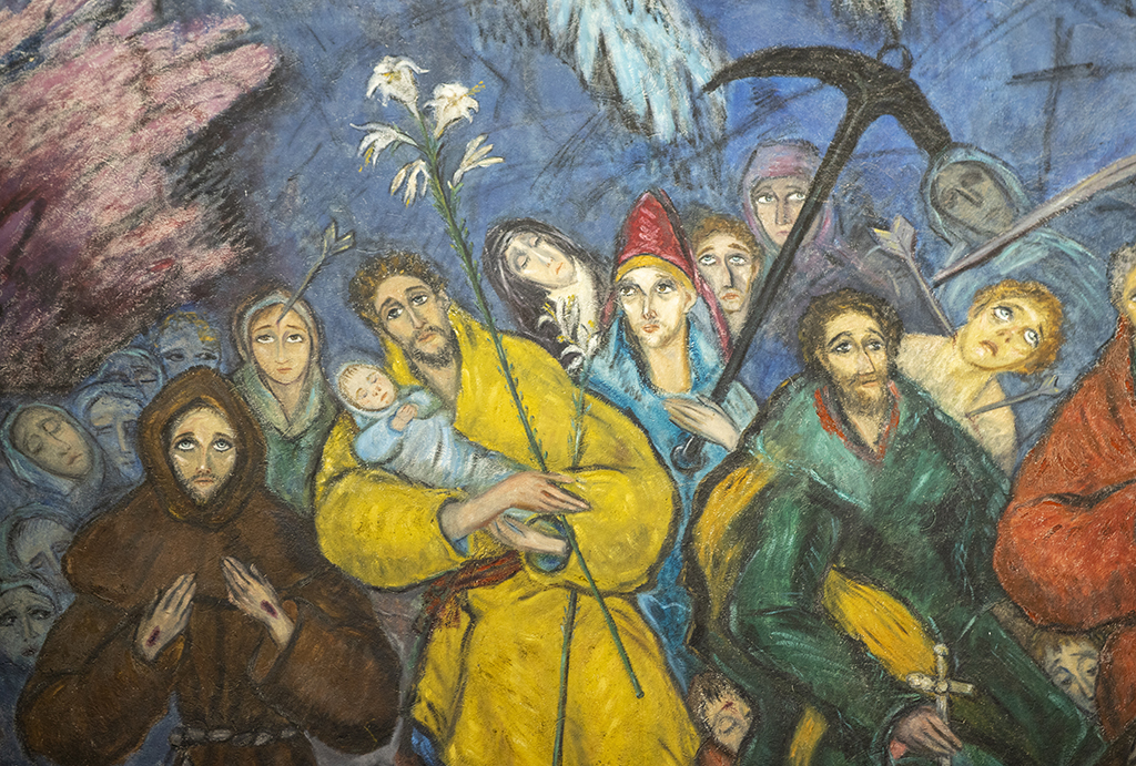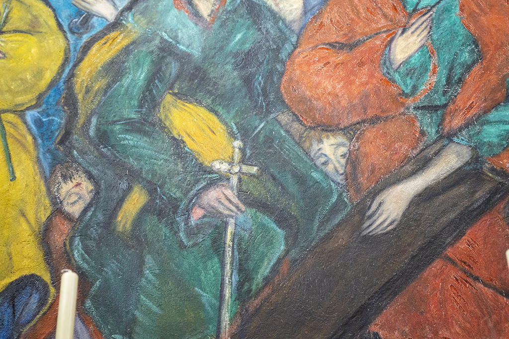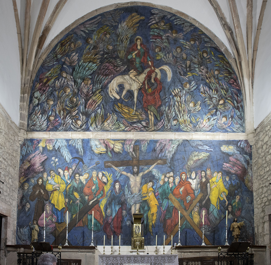 La huida a Roma en 1941,en tales circunstancias marcarían su destino vital dedicado de pleno a la pintura. En Italia se impregnaría del color del cinquecento, de la pintura veneciana, incluso del Greco, como podemos vislumbrar en sus grandes obras murales y de temática religiosa. Trata la figura humana con una sencillez ingenua que permite traslucir un sentimiento religioso profundo y un espíritu místico, pero al mismo tiempo tenebroso y sangriento, como queriendo huir de las figuras bellas para representar su dolor