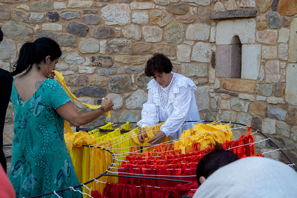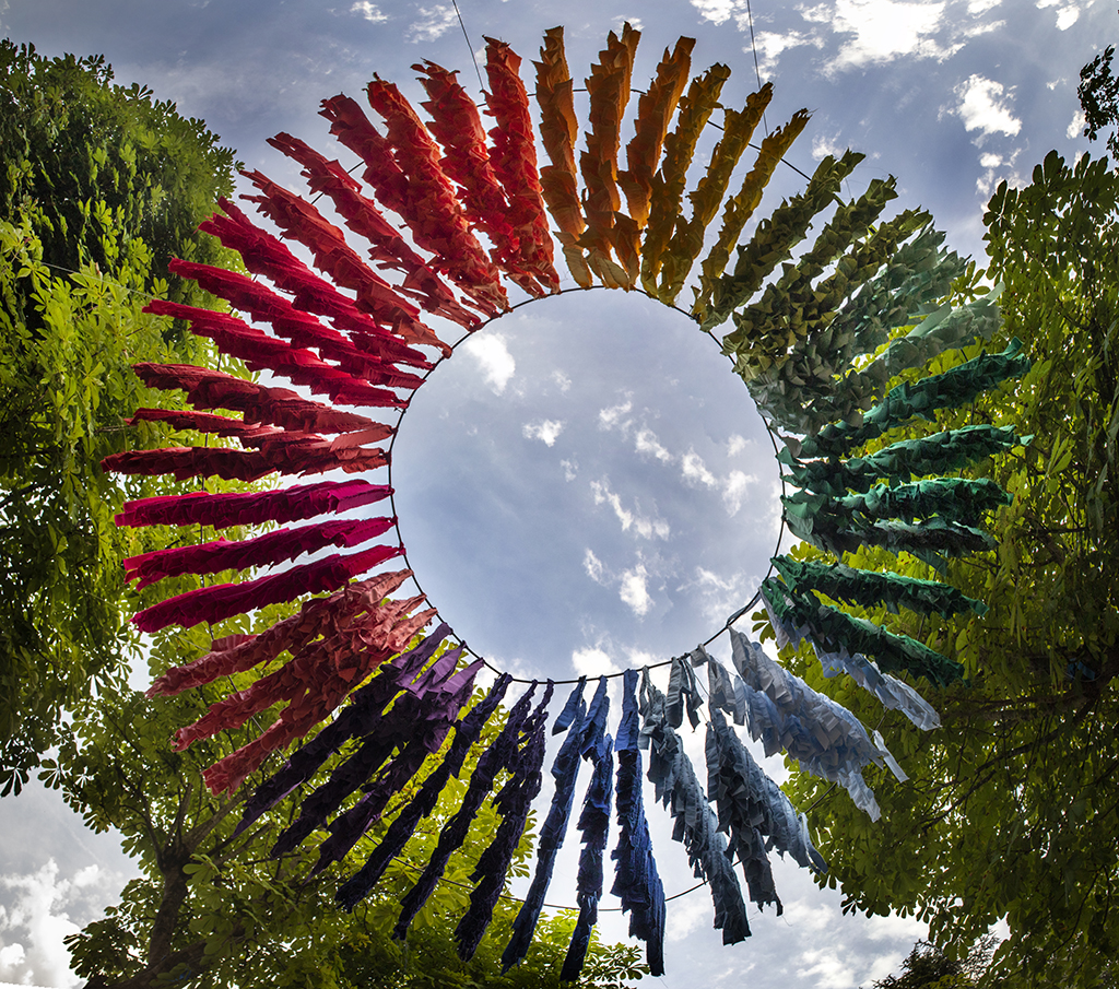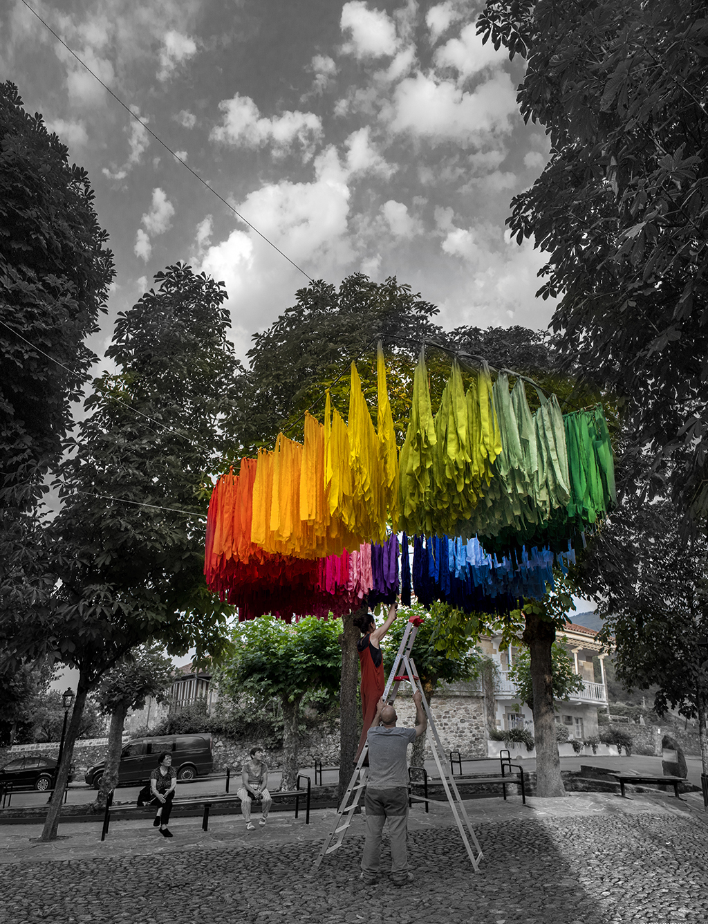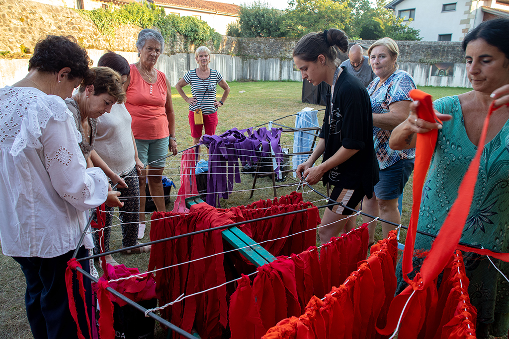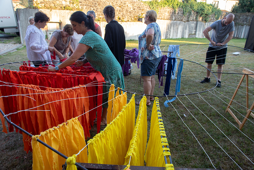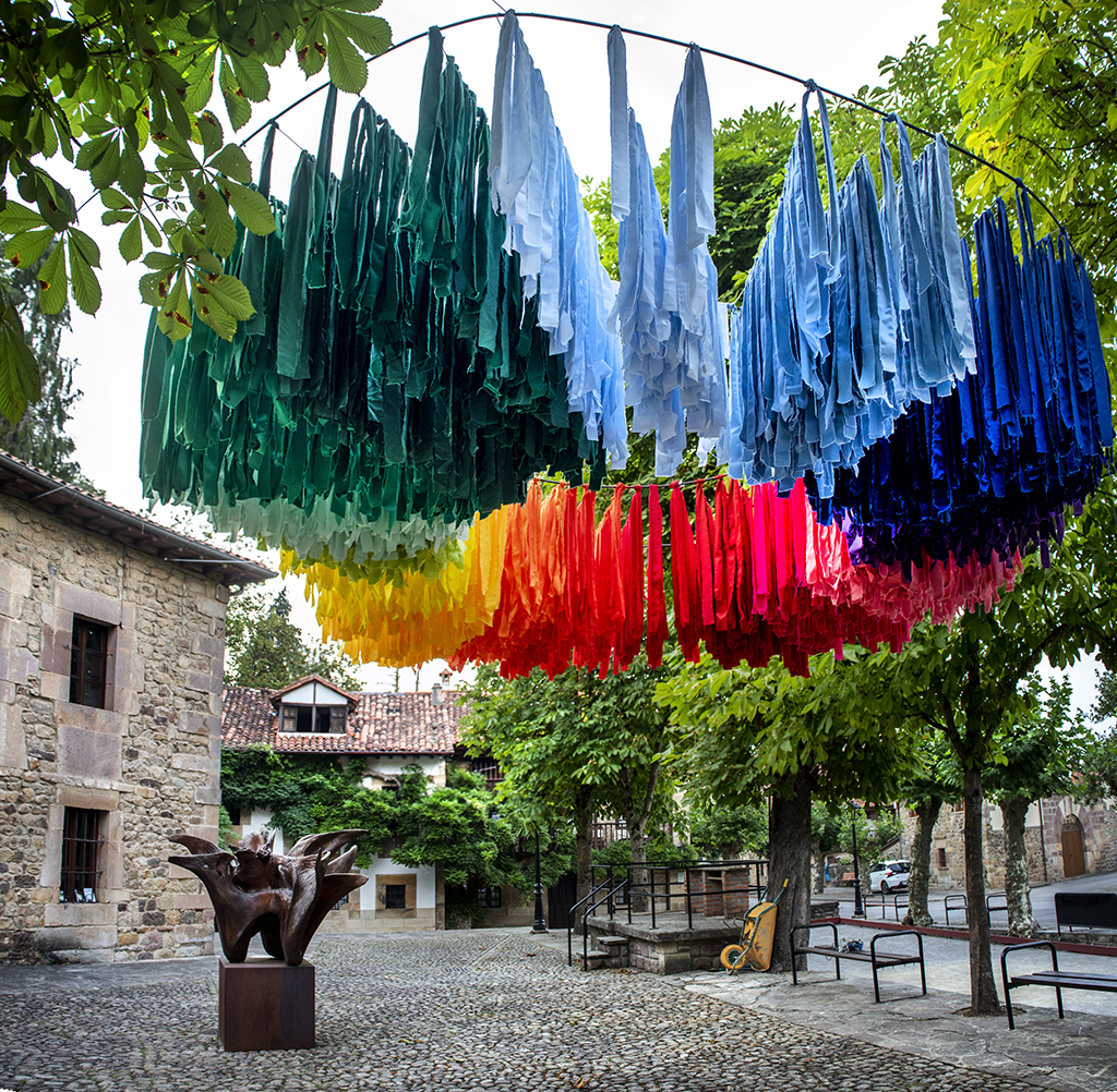 Las mujeres de Mazcuerras, con su presencia y colaboración pretenden dar color a nuestro encuentro de artistas. Las telas son los colores de su paleta, que en esta ocasión caen del cielo como una lluvia de estrellas. La instalación está ubicada en la Plaza de Concha Espina, antigua plaza de los Husares, junto a la bolera principal de Mazcuerras, suspendida en el aire para que sea movida por el viento, constituyendo un círculo de colores. Han contado con la dirección artística de Paula Andrés Castrillo. Para esta intervención se ha contado con la colaboración de TEXTIL SANTANDERINA, que ha cedido el material textil, gracias a su director Juan Parés y empleados que han colaborado.
