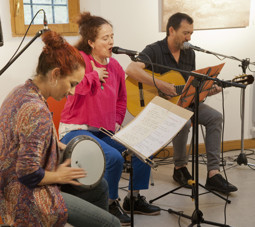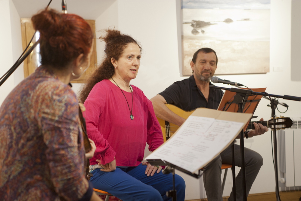 Raquel Serdio y Manuel Iglesias con parte de su repertorio «VELETA DE CAMPANARIO», acompañados por Luisa Bahillo, actuaron en la casa Gótica de Mazcuerras en Aselart 2018